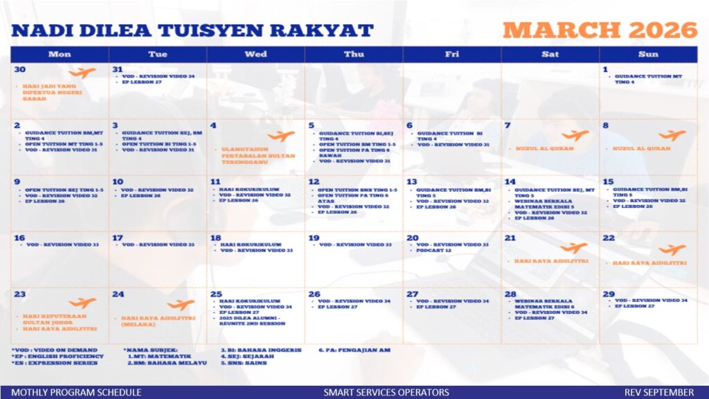 JADUAL AKTIVITI PROGRAM PERKHIDMATAN PINTAR – NADI DILEA TUISYEN RAKYAT MAC 2026