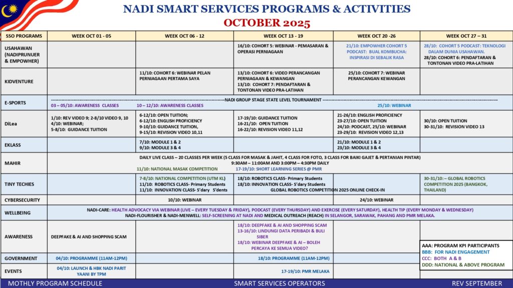 JADUAL AKTIVITI DAN PROGRAM PERKHIDMATAN PINTAR BULAN OKTOBER OKTOBER 2025